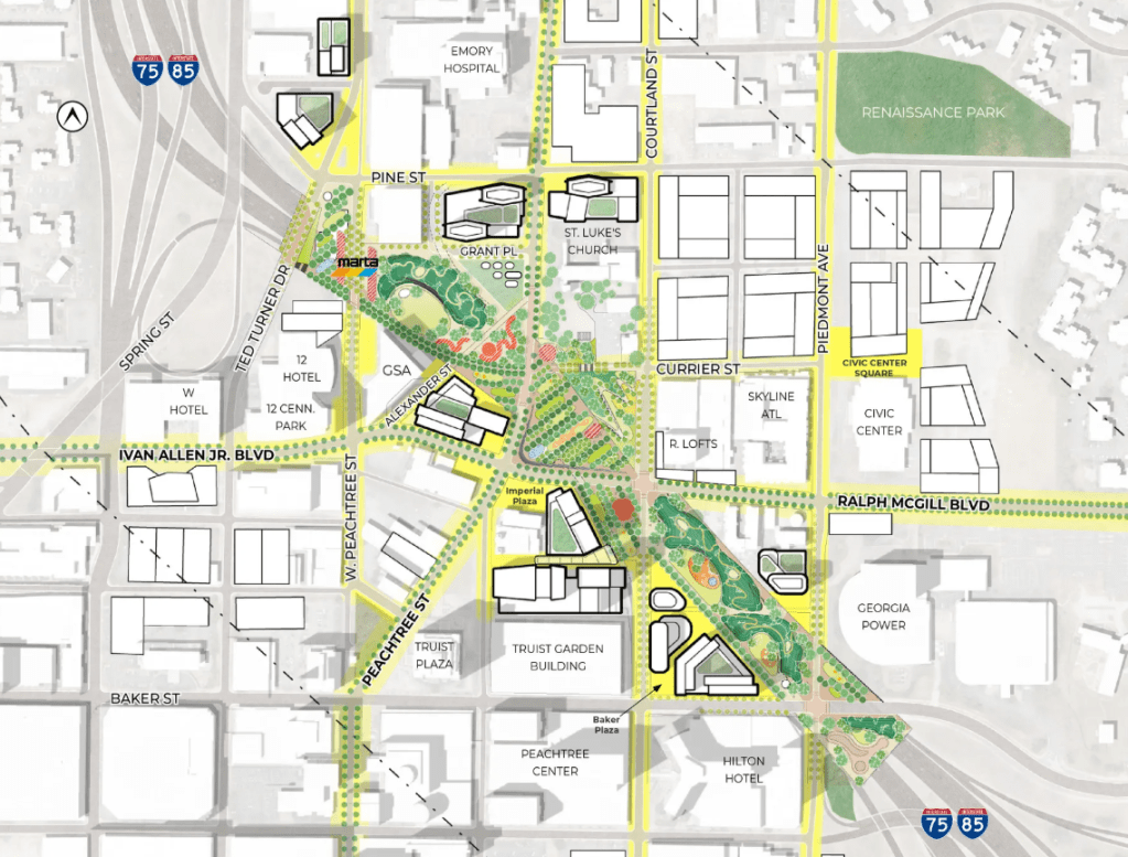 Enter: The Stitch – And the name couldn’t be more fitting. The Stitch is a highway cap project that aims to erase the separation between Downtown and Midtown by creating several acres of land on top of the Connector. This land will then be developed with parks, offices, and most importantly, residential – a key component that Downtown is sorely lacking. Equally important are plans for affordable housing, better infrastructure for pedestrians and bikes, and integrating (and redeveloping) Civic Center MARTA Station into a vibrant community.