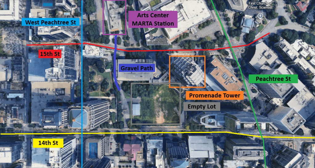 Fast forward to today, the Connector has done a lot of damage to traffic flow in the city – there’s a reason Atlanta is notorious for its terrible traffic. And while the entire Connector has made Atlanta infamous for terrible traffic, one particular stretch stands out as particularly destructive: where the Connector crosses from the West side of Midtown to the East side of Downtown. This section of car sewer literally cuts the city in half, and the effects are much more than visual. Midtown has been thriving for the past couple of decades; the transformation from empty lots and 1 or 2 story buildings to a high-rise filled mixed-use urban haven has been staggering. But on the other side of the Connector, the love hasn’t been spread.